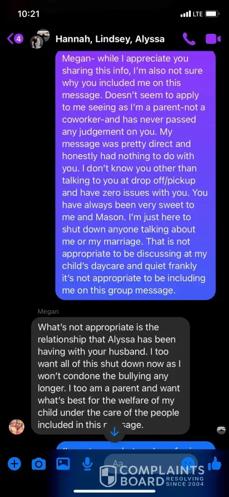 Date of Incident: October 1st, 2020 Client #: I'm not sure what our family's client number is so I have attached an invoice that shows our Goddard School payment for your records. Description of Incident: My wife, Ashley Messer, was put into a group Facebook message by a newer employee of The Goddard School in Knoxville, TN. Megan Bartolon is the name of...