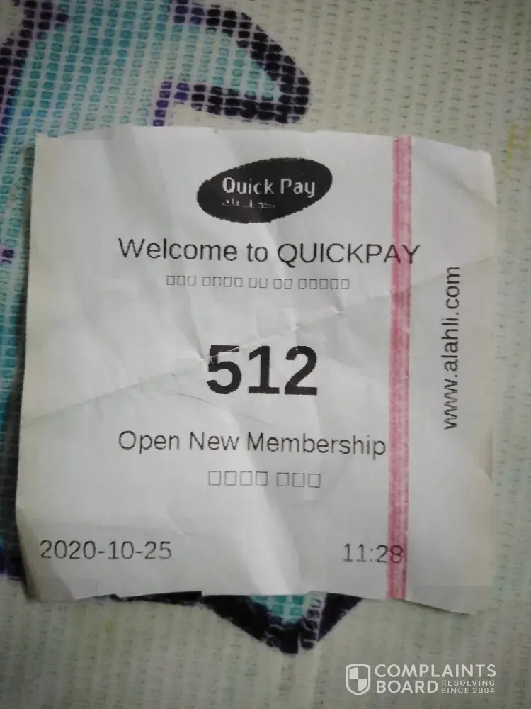 Sir, I am complaints this from qurayat quick pay branch., I went to branch on 11.28 am to own a new account and having a token., unfortunately the branch is not receiving customers on the basis of perticular token numbers on the day., there is only 1 staff at that time on seat ., then I waited there until 3 pm., approximately 4 hrs., when I got appointment staff rejected to make new account due to must pay or sent1000 Saudi riyal initially to make new account., I am ready to pay or sent 500 Saudi Riyal which I have., that I discussed with manager too.. But they refuced to make new account., sir this is a humble request that please put a board or any informative writhing on branches that needs documents and initial amounts to open a new account., it will help public who wish to having an account with quick pay and will save our precious time also. Thank you.