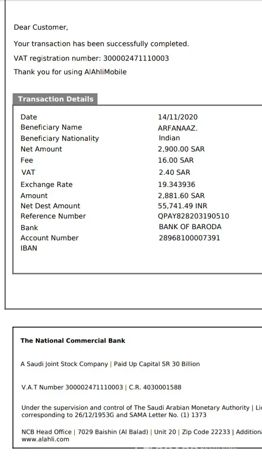 I had made a local transfer from Ahli to Anb