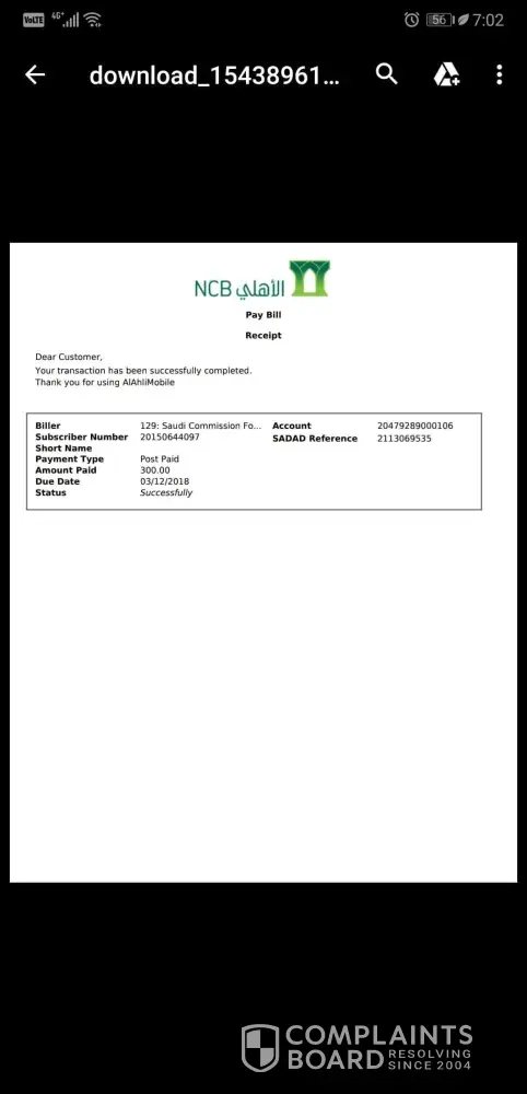 Hi my friend ask me to pay for her certificate of goodstanding for saudi council.. And pay it online last december 4, 2018 and chose 129 code for saudi council then automatically deducted amounting to 300SR from my account.. It says it was sucessful.. But still no update thru saudi council the transaction still unpaid but in my account it says successful transactions. I will attached my receipt from my statement of account. Please check where was the problem and why it was not received by saudi council. Thanks.! Waiting for your urgent reply.