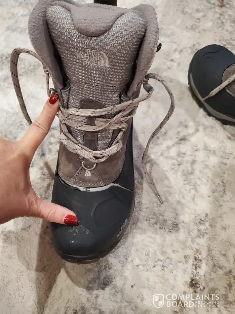 I'm sending in my winter boots that I received as a gift over two+ years ago that I wear maybe once a winter season since I live in Texas. The rubber toe has cracked on both sides and have pulled away from the cloth / shoelace area. Totally unacceptable for North Face and for the prices you charge. I have seen too many negative reviews and am anticipating...