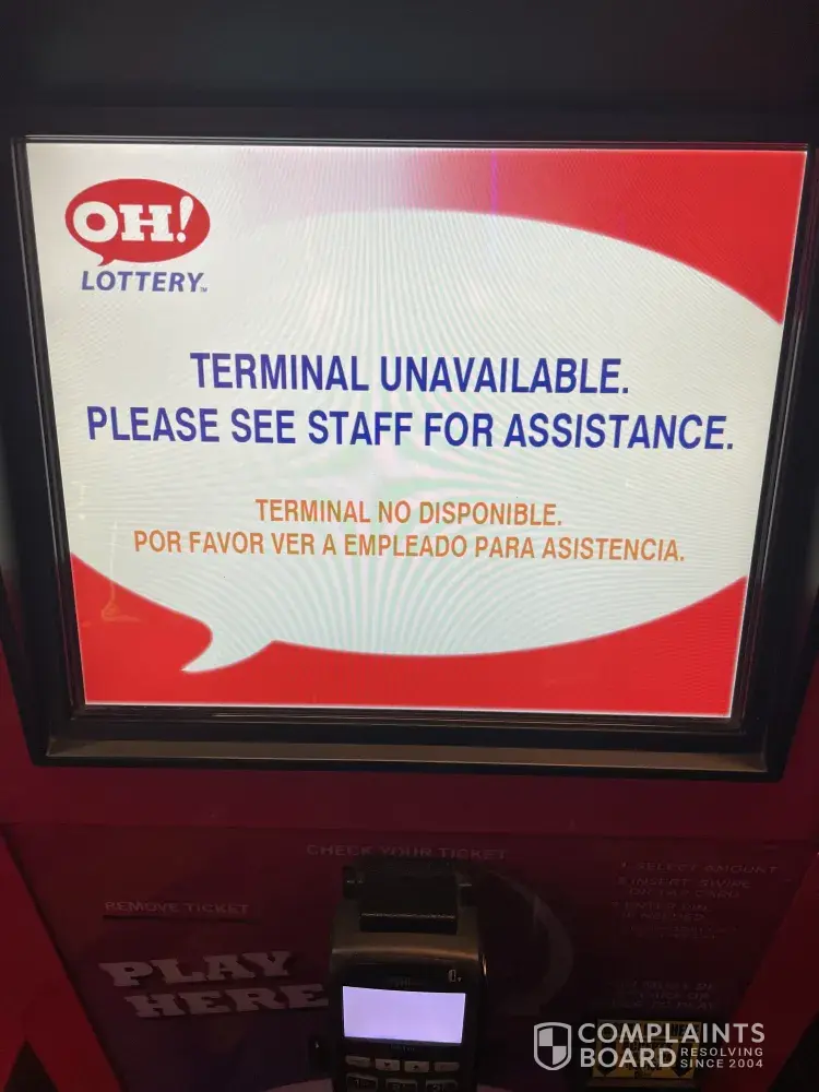 on 10-10-2021 between 3:10pm and 3:15pm I was at the 931 East 2 nd Street, Franklin Ohio location. I used the machine to cash my winning tickets to purchase more ticket the machine was having an issue, when I hold the clerk he said there was nothing he could do it was my problem so this location and the lottery machine stole 15 dollars from me. When I handed the clerk my tickets he said they had already been cashed at his location however again I had no tickets