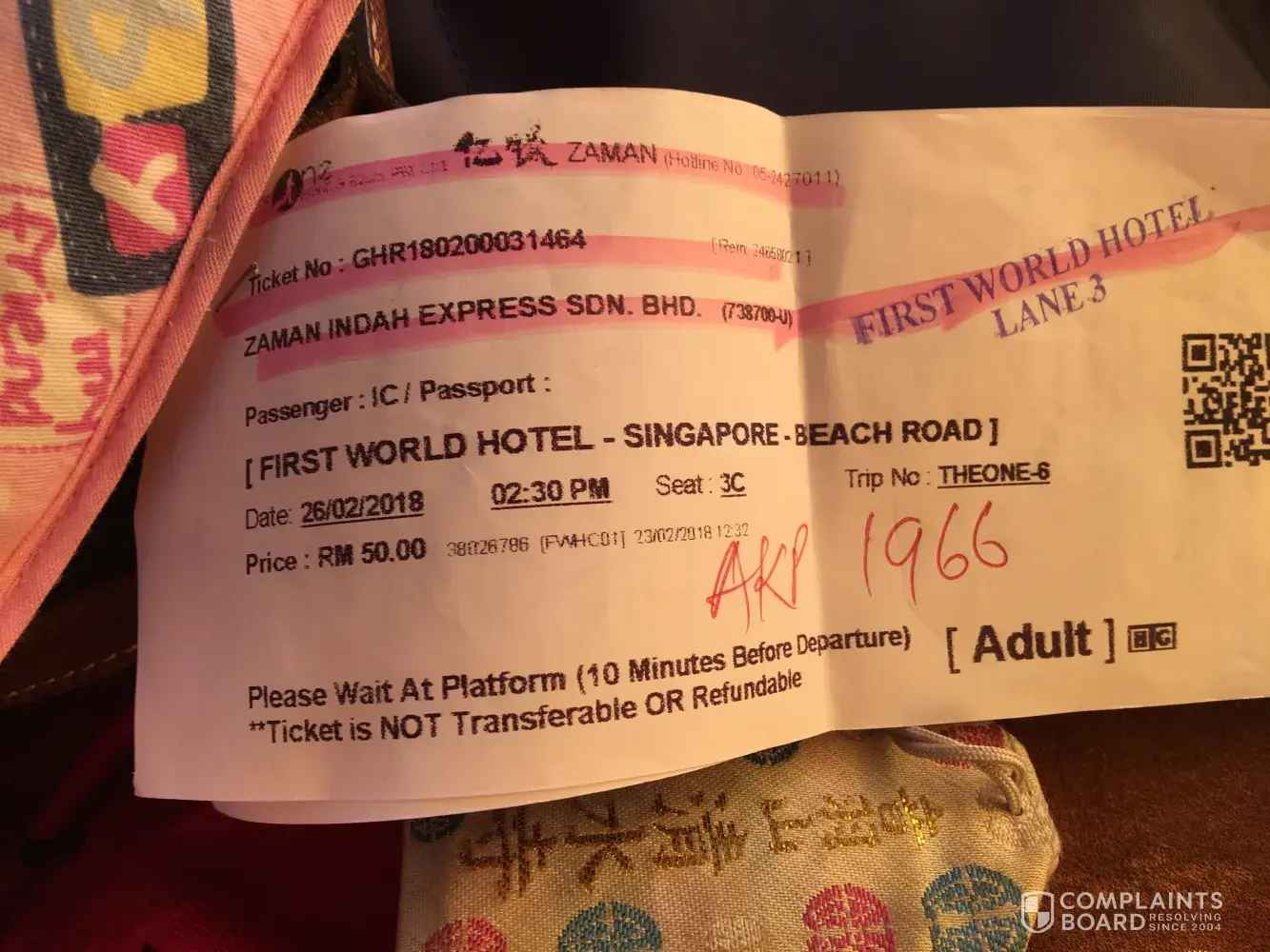 Incident: We bought 3 bus tickets at time stated above for parents and myself & we expects to have a pleasant tour back to Malaysia, however experience that we had is very disappointed and not happy.