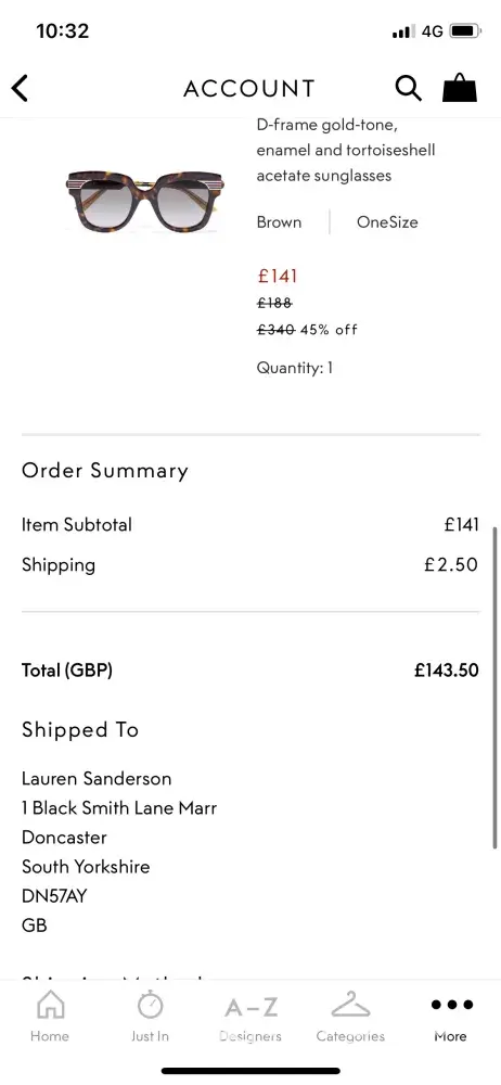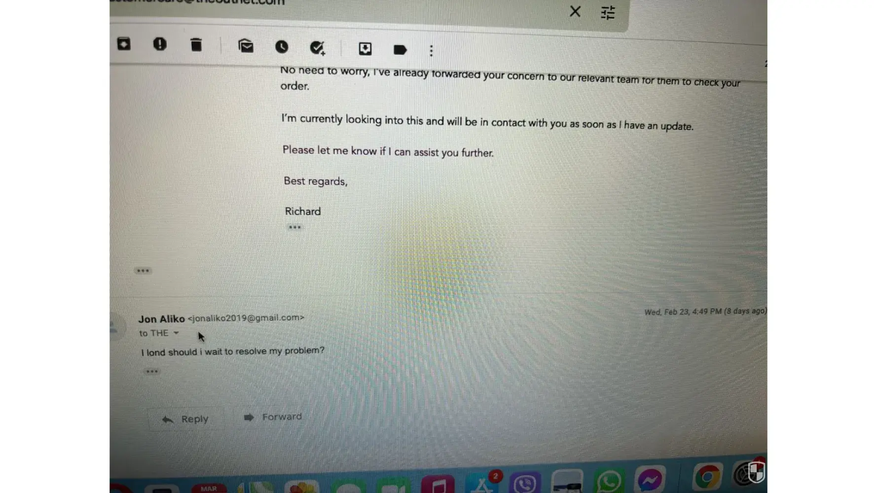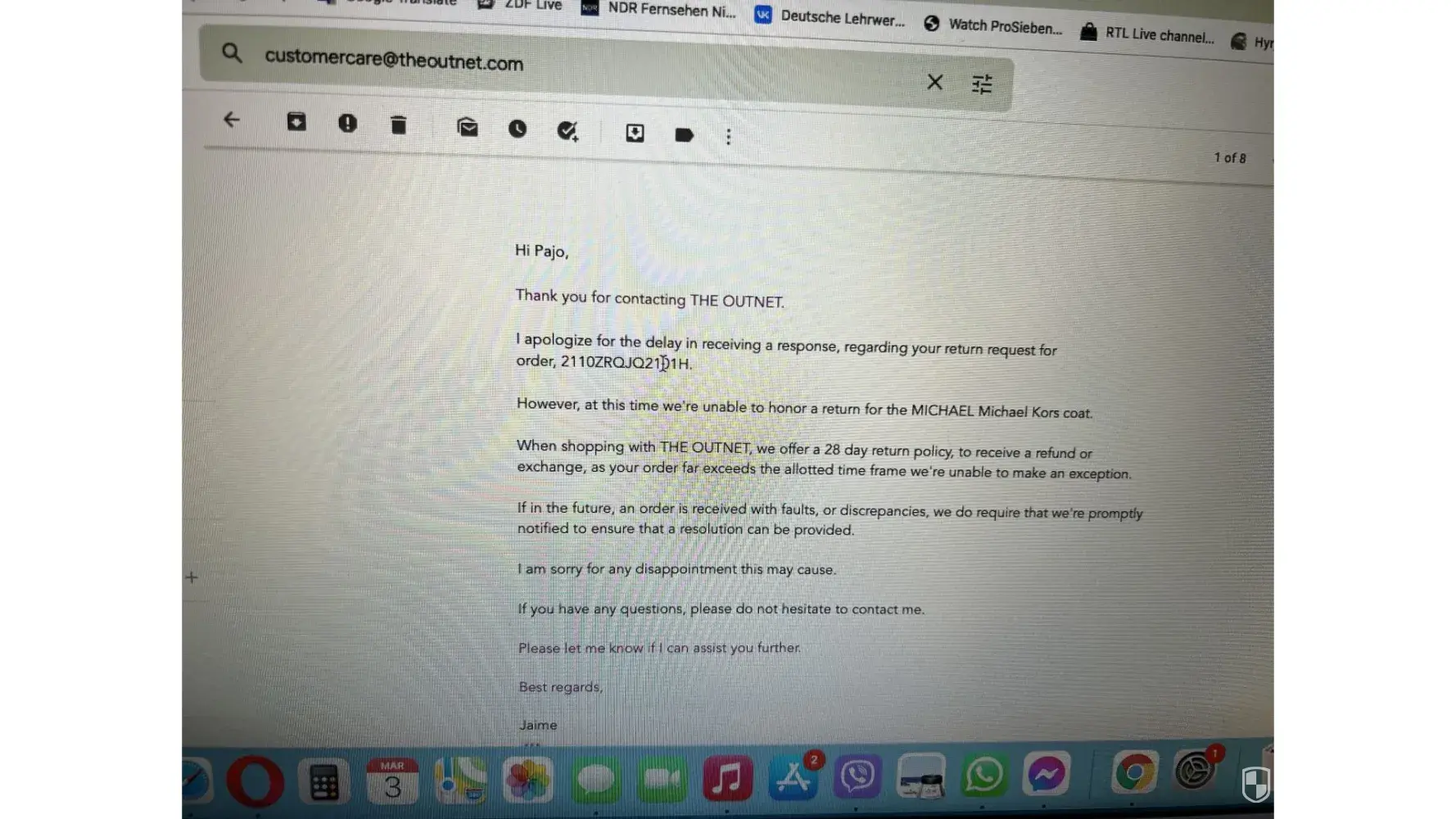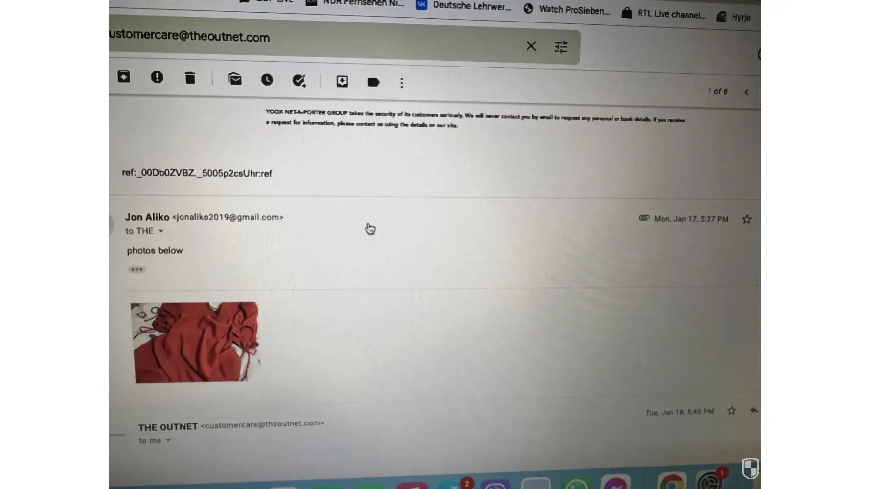Below i have attached emails with theoutnet, but the chats and the phone call i have no photos.