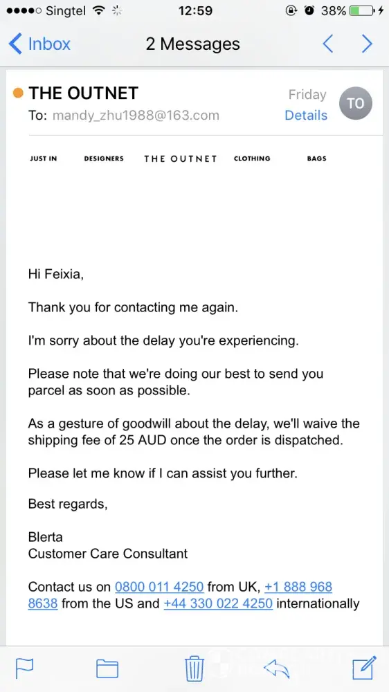 I've ordered a pair of straight leg jeans from www.theoutnet.com and received skinny leg jeans. I contacted customer service via email and their rep replied that I need to contact them via phone to resolve the matter. So I called and explained the situation. Their rep was really nasty, he tried to assure me to keep the jeans because there was no big difference between straight and skinny.
