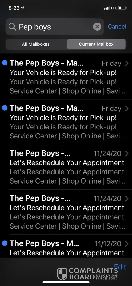 My experience has been terrible dealing with pep boys. I had made an order online before and received message to pick up. When I arrived to the store I was told there was nothing to pick up that wasted my time. Every since then I feel I have been sent harassing emails I have unsubscribe plenary of times but you guys constantly keep sending me other customers information. I tried to give you guys business again yesterday but hat was a failure again. I will never purchase or refer anyone to pep boys due to the unorganized professionalism and poor customer service. I ask to please remove my email ([protected]@yahoo.com) from any of your data I do not want emails sent to me regarding other customers information. It seems your company is not handing customers data correctly. If you want to speak with me I can be reached at [protected].