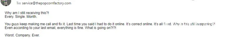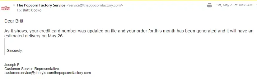 Read full complaintIs The Popcorn Factory Legit?