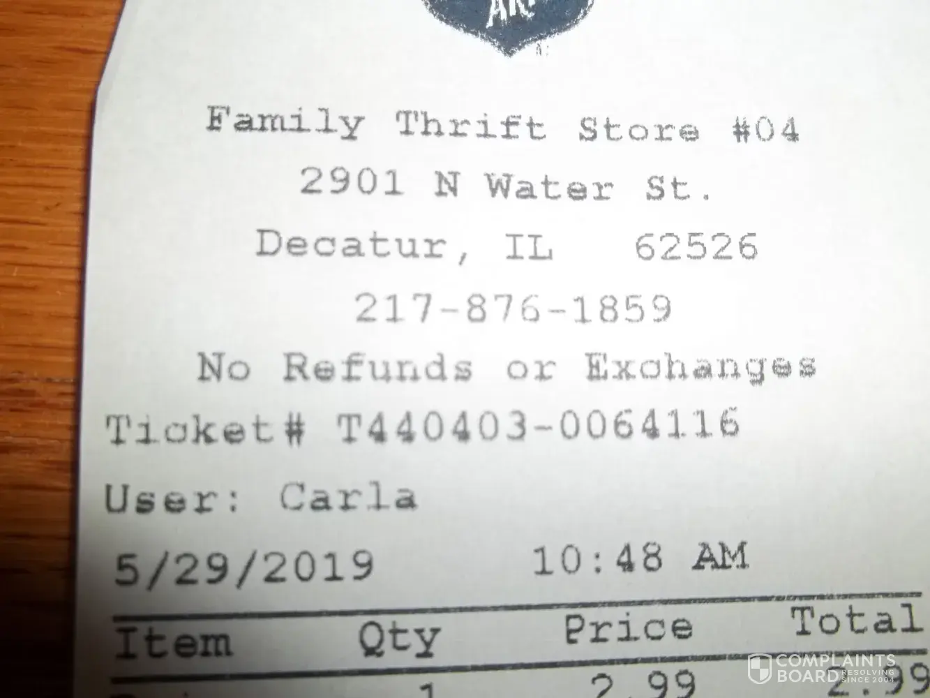 On vacation in IL we stopped at your store in Decatur at 2901 Water Street on 5/29/19. Carla checked us out with attitude. It was Senior Day but she quickly told me because mine and daughters things were on sale I did NOT qualify for Senior Discount. I find NO store policy that says "for certain items only". Also Before checking out my son in law asked to see some work boots in a glass section beside her? She said get out of line, wait over there, she refused to show us or set them up and yelled for someone to come to that counter. That would have been a $30 added sale? Then for some reason she made me pay twice (I had 2 full baskets) and still refused the discount. $51.82 total I paid for rude service. If my daughter wasn't with me and setting up a new home I would have Left everything there and walked. Honestly I would like this lady fired/dismissed. If you don't want to work with customers work in the back pricing items. Stay away from the puplic! She cost me $13 and a lot of patience. I asked for a manager and was refused, Now she's upset other customers so I paid. Who gave her the right to say Only certain Seniors get discounts & No manager service? Actually if I requested Carla to pay my total amount maybe she wouldn't be so quick to be rude. Please resolve for me.