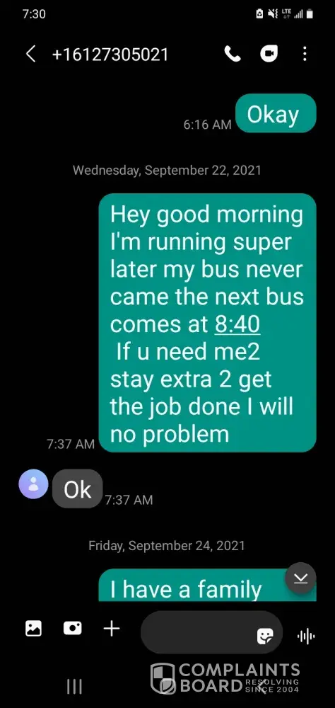 I finally got the # 2 call if I was gonna be late ect.. when I call that # no one answered..