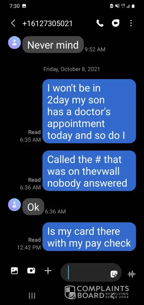 I had 2 put my name on a piece of paper that was not true 8n order 2 get my check Friday oct.8th.
