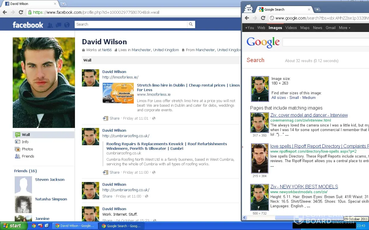 David Wilson is another character which I've managed to time stamp and have taken print screens of next to the photo search results via Google Images with a simple drag and drop.