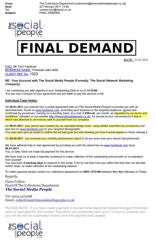 The Social Media People – Invoice at the centre of an argument.