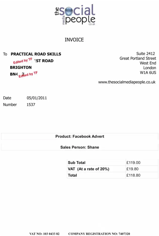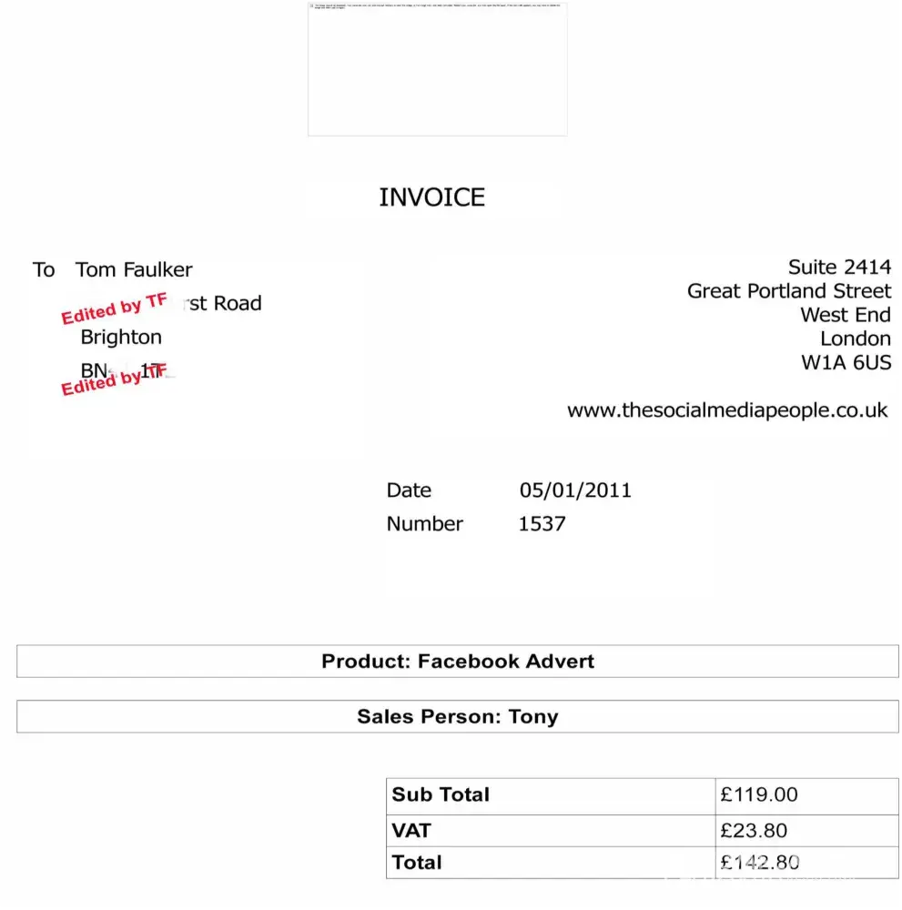 (Assuming the attachments come through - 2 copies of THE SAME VAT Invoice (1537) with different details - and Tom can't even add up 119.00 + 19.80. No wonder he can't understand English!)