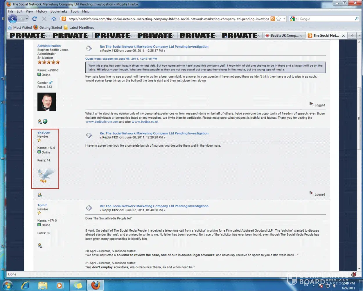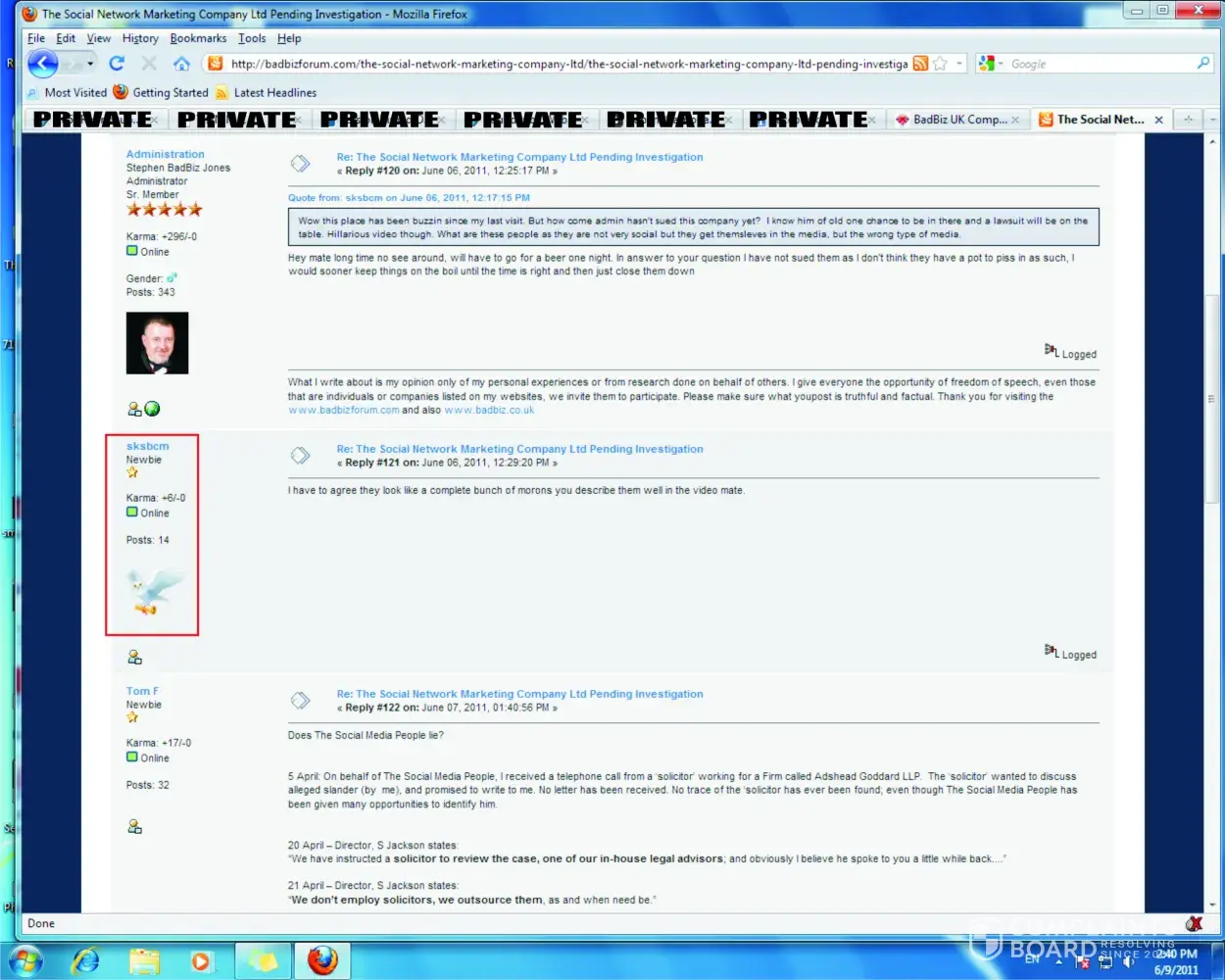 Do you acknowledge "sksbcm" WAS a commenter on the BadBiz Forum & conversed with "administration" as they were two different people?