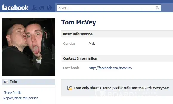 Hi Tom McVey, I thought I would return the favour of posting my Facebook on here. Guys and Girls check out Tom McVey Apparently he likes kissing other men.