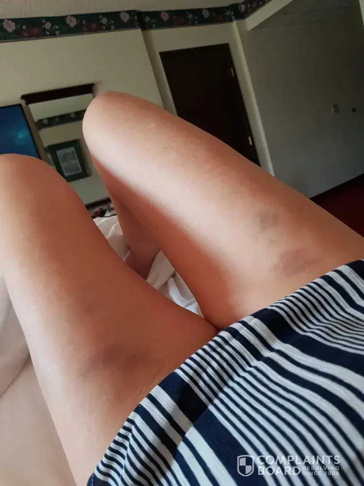 This is just one picture showing the bruising where she was forcibly restrained by two male staff. As you can see, the location of the bruises verges on molestation. I can only assume that the Strat/ Stratosphere management are happy for this to happen to your wife, partner or daughter as there has been no attempt at contact nor acknowledgement. You have been warned.