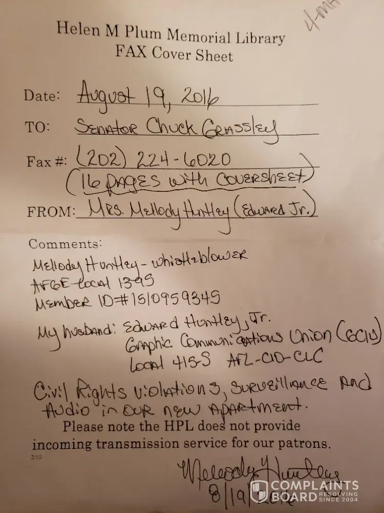 I am home retired. Please do not share my Personal & Confidential information with AFGE Local 1395 due to impersonation. I was informed prior to wrongful termination, AFGE Local officials created the derogatory and fake whistleblower reports with management; mailed using me and my husband return address.