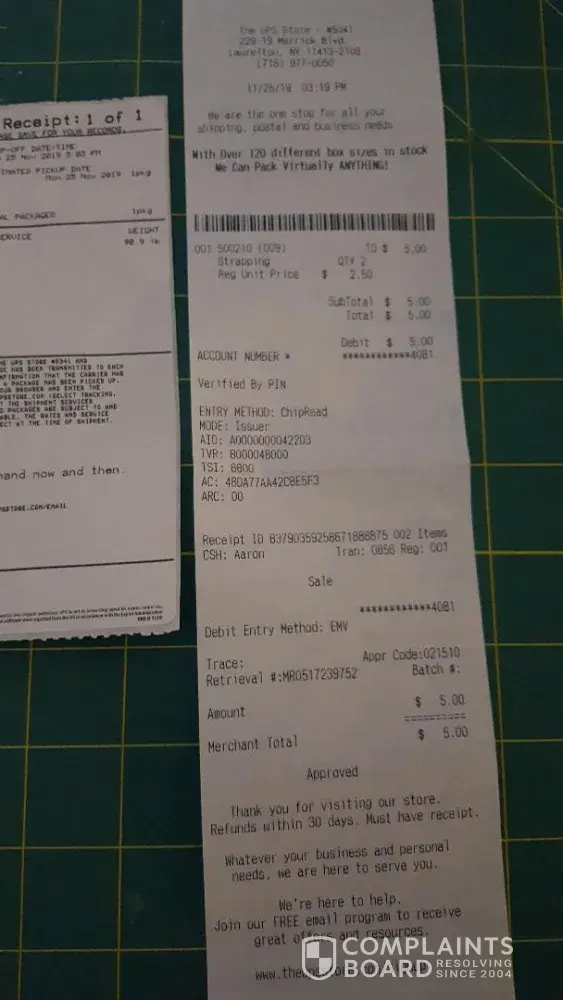 On November 25th I went into the UPS store to return a package using the digital phone label that the company texted. The package belonged to my son who was out of the country and didn't have the time to do it himself before leaving. (This was the last day the return could be made.) The return consisted of two boxes. The clerk scanned the label and told me...