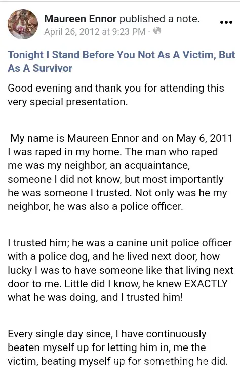 Justin Hawkins brutally assulted and raped Maureen Ennor while working as a Police Canine Handler. After an investigation Hawkins lost his Job as a Police Officer. That should speak loud and clear if his guilt. Hawkins feel off the map for years not seeking to work. Upon looking into the matter it makes since as Hawkins mother lives in Concord, Ca. Somehow made some connections while laying low at his Mothers.