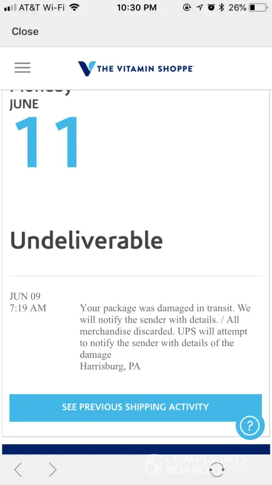 Will never be ordering from this company again. This is the second time in a row having a problem with Vitamin Shoppe and their shipping. I was supposed to receive 2 cases of bang on Friday, June 8th. Instead I never received them and now UPS is telling me the package has been damaged and can no longer be delivered and has to contact Vitamin Shoppe. I want the two cases of Bang I ordered AND I want either store credit or an additional 2 cases for the inconvenience that always seems to come around whenenever I order from your company.
