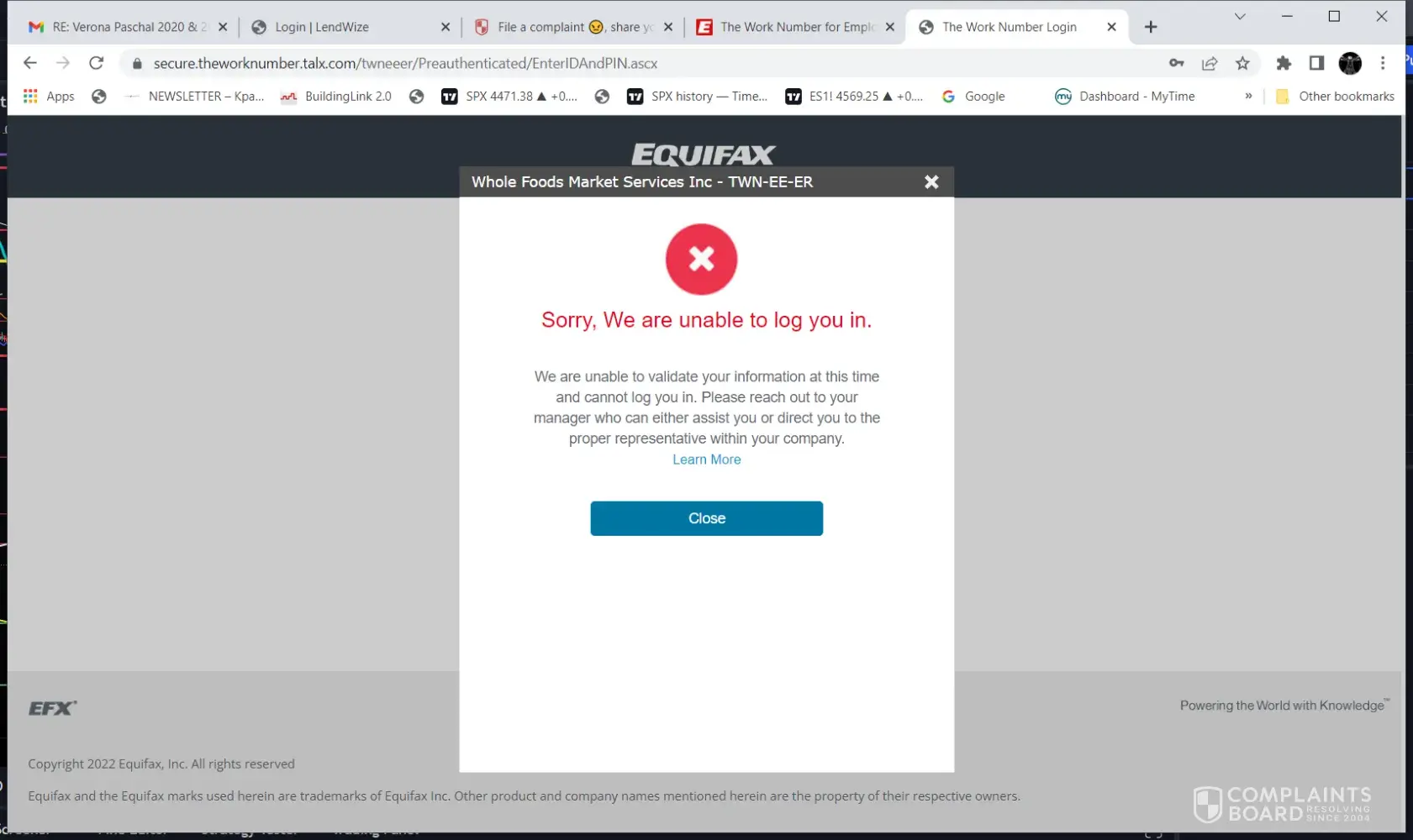 It's simple. I gladly quit working for Whole Foods (terrible company to work for) appx 30 days ago. I'm in the process of purchasing a home. They need copies of all my paystubs. Not surprisingly, wholefoods has denied me any access to my data. Going to the store in person and speaking to two different managers, they told me I need to contact www.theworknumber.com. I needed to provide these documents to the lender rep today. So I tried going online on my phone. The website is designed in such an asinine manner that you will have to click through several pages and the same button that says "register" or "sign-up" nearly a half-dozen times. When it asks for employer info, I type in Whole Foods, Whole Foods Market, Amazon, The Whole Foods Market, and every other version of wholefoods one can fathom. Each time the website said "no employer found."