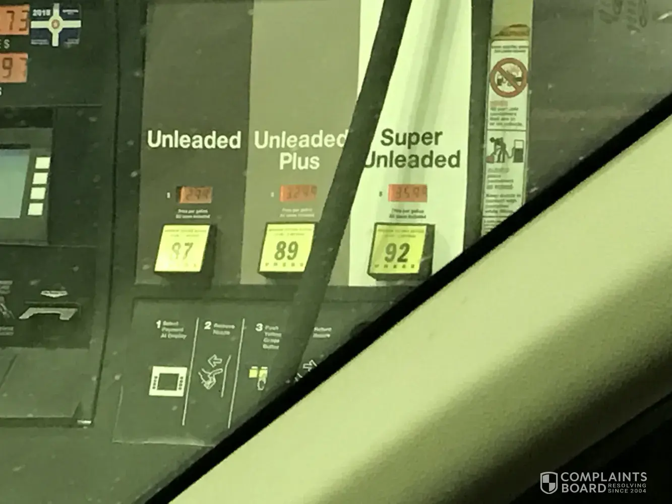 I put 89 octane in my car on Friday September 15. It was $30 worth. My car started spitting and sputtering about a mile out of town. I had to have it towed back to town. I put a $179 O2 sensor on it just to find out it was water in the gas. I missed a whole day of work. The vehicle is the only one I have.