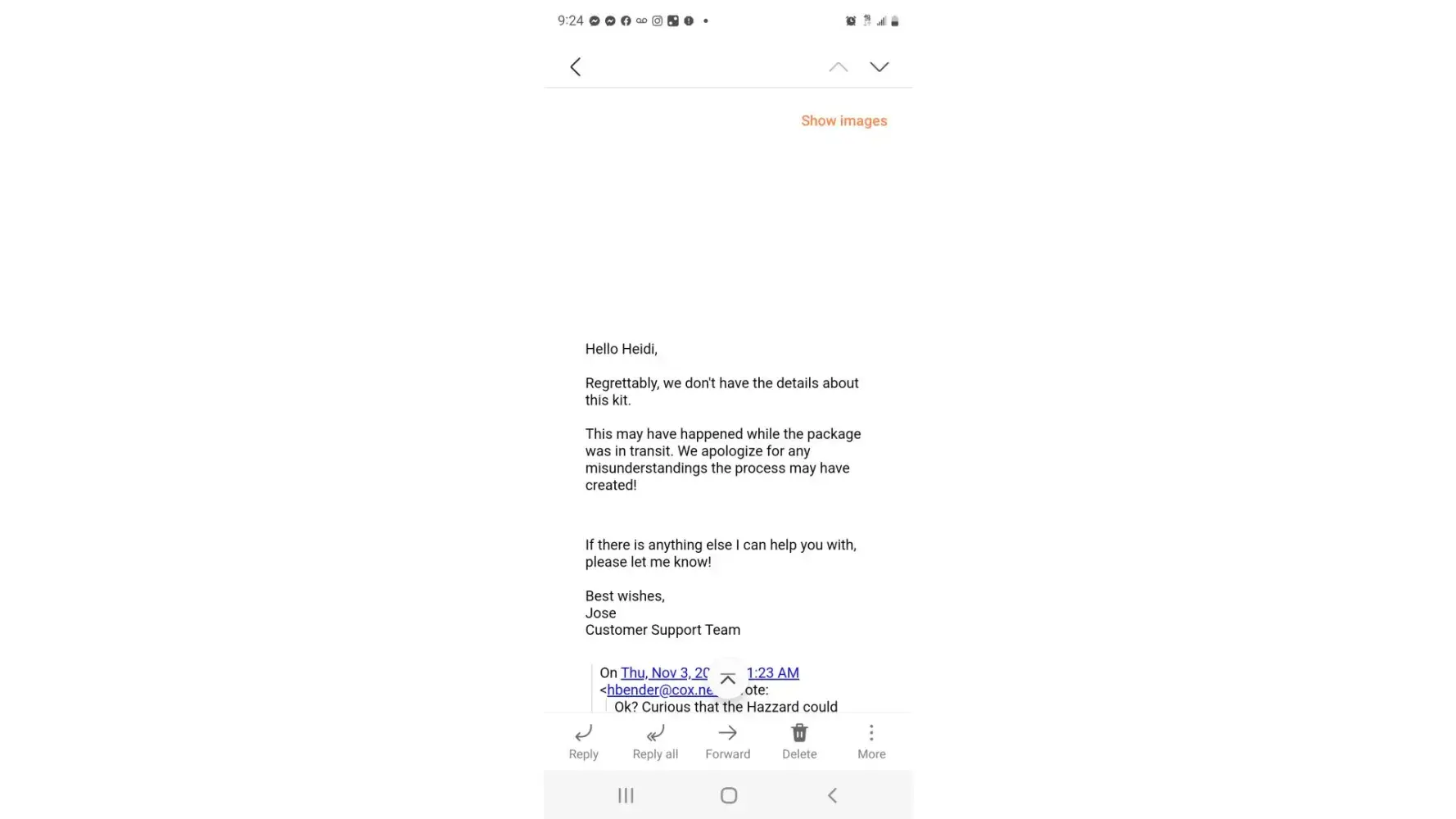Additionally I had marked that I wanted my items back .. and I have inquired about this and have not heard a response as to why that didn't happen.