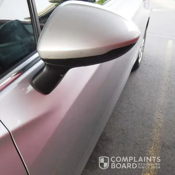 10. In regards to the driver's side mirror, there is no damage to the mirror regarding scratches or anything. So they would indicate it wasn't hit or run into by anything. That's not even damage I would have noticed in a walk through. But it's very odd how they noticed it with any scratches or anything that would trigger you to look there. Once again look how close they had to get to show the damage. How would I see that in a walk through?