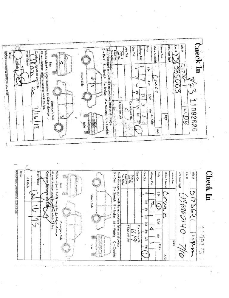Now with all this information, apparently these were the last rentals of this vehicle, but what alarms me is the lack of proper inspections by the customers, and the rental car company location.
