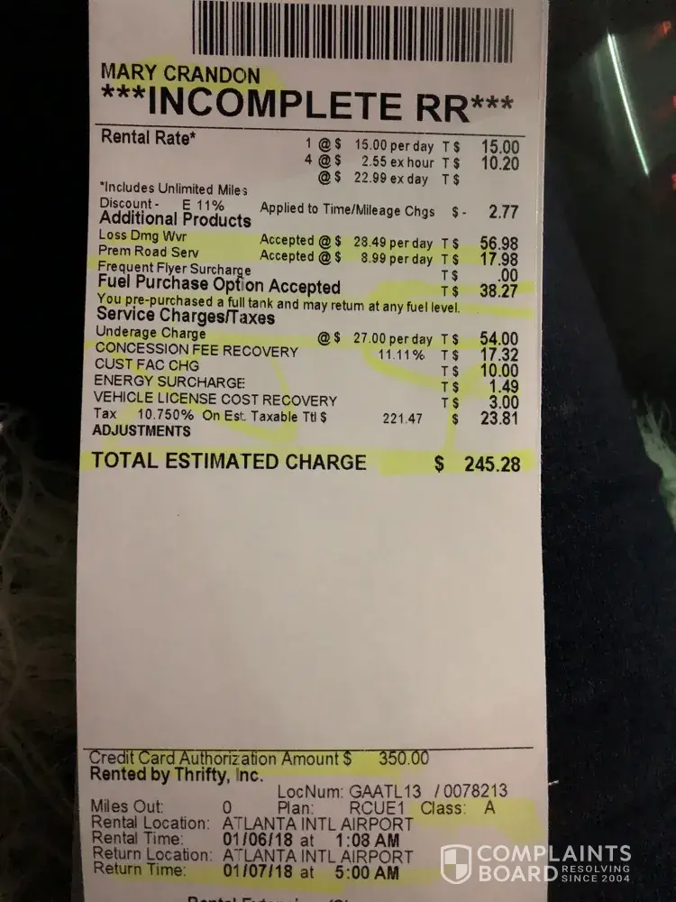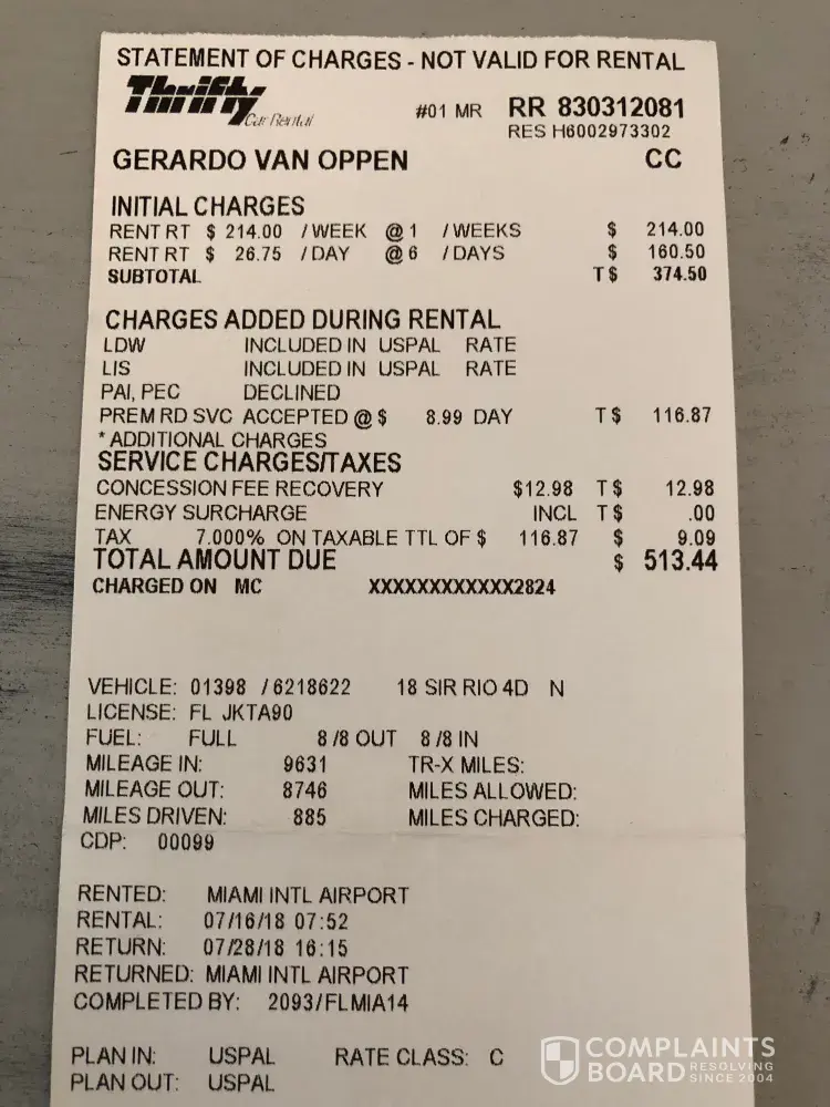 Read full complaint and 5 commentsthrifty car rental orlando fl airport.