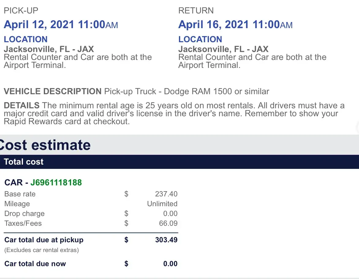 • I exchanged the car at Thrifty with a new reservation until 3/8/21