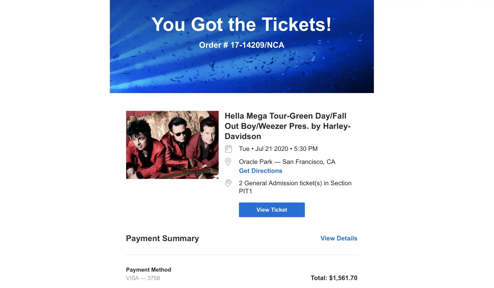 I went through all the steps to verify my payment method. I even received an email that the tickets gave sold.