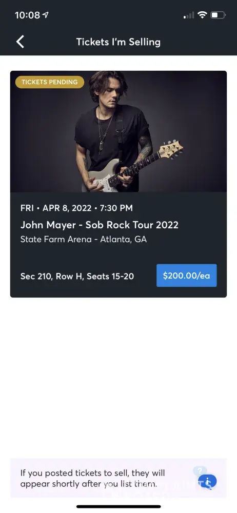Event Tickets Purchased - John Mayer 2022