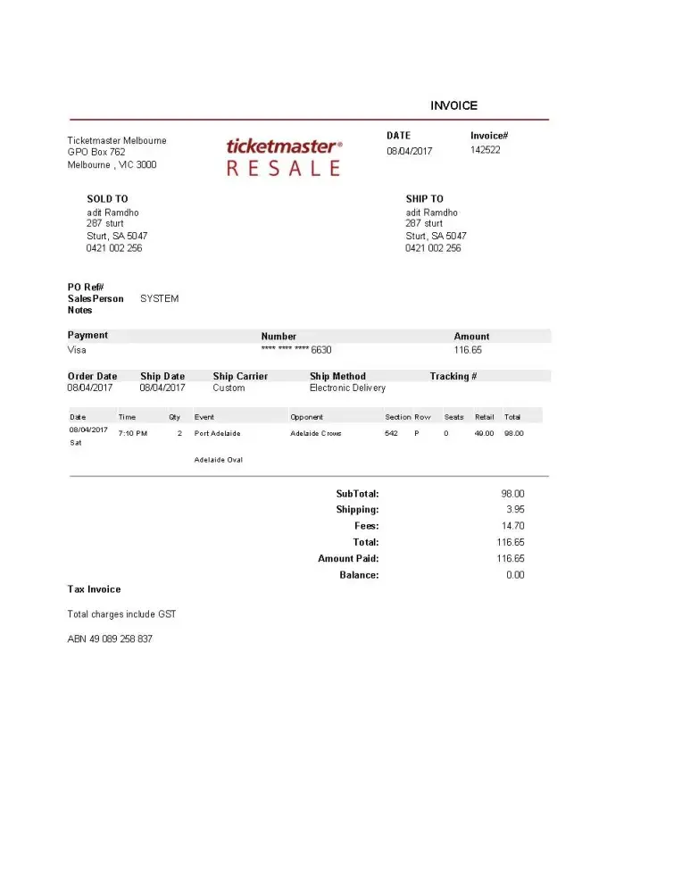 I bought 2 (two) tickets on ticketmaster for Footy match but turns out it is an unauthorized seller and I couldn't watched the game.