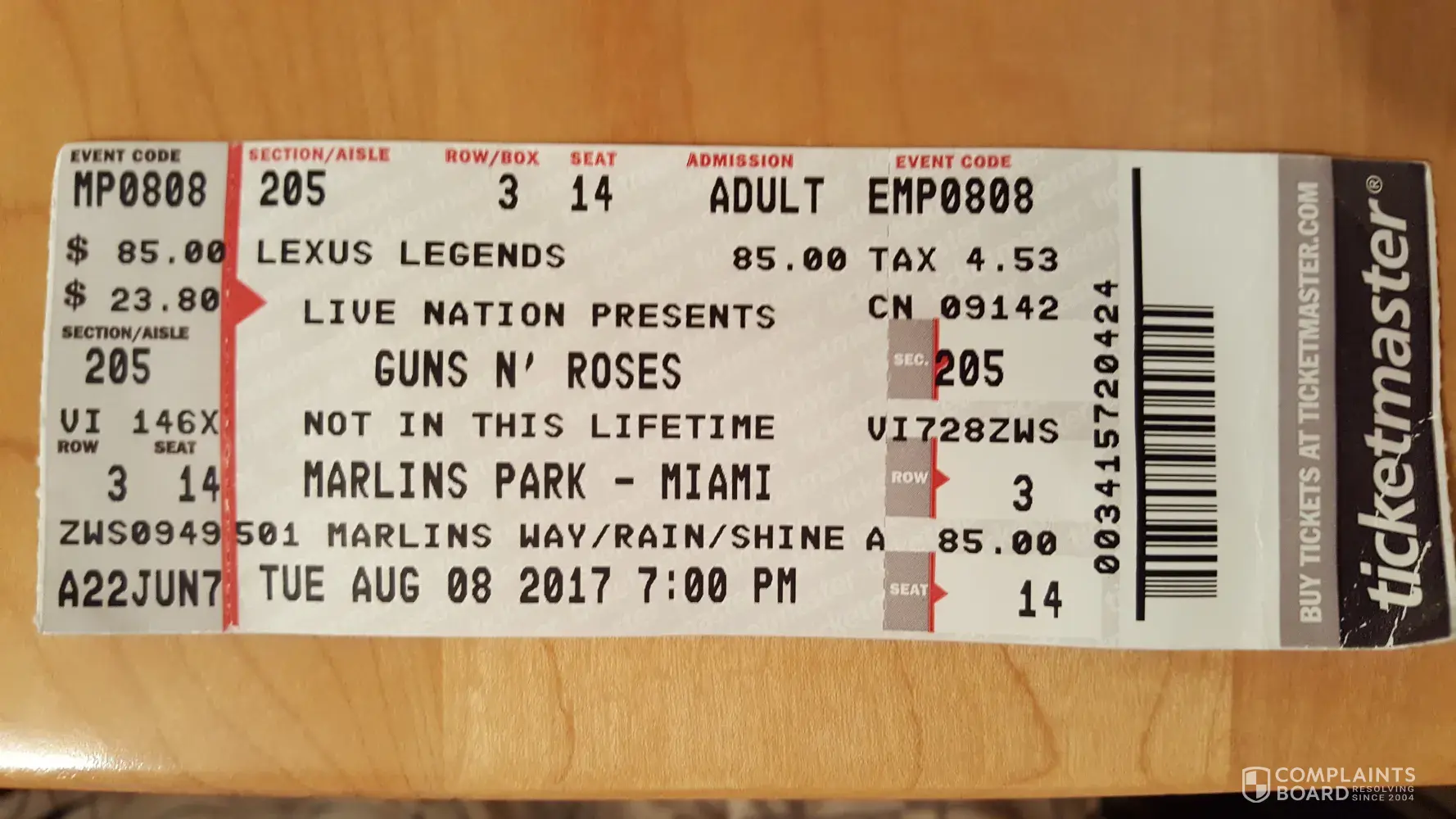 I bought two tickets for me and my girlfriend well in advance for the Guns n Roses show in Miami on August 8th. Sector 205, Box 3, chairs 14 and 15.