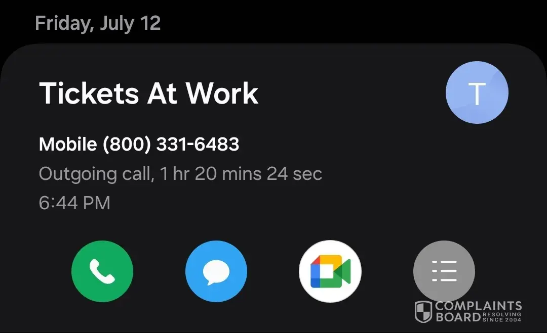Read full complaint and 1 commentIs TicketsatWork Legit?
