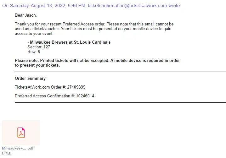 On Saturday, August 13, 2022, 5:40 PM, [protected]@ticketsatwork.com wrote:
