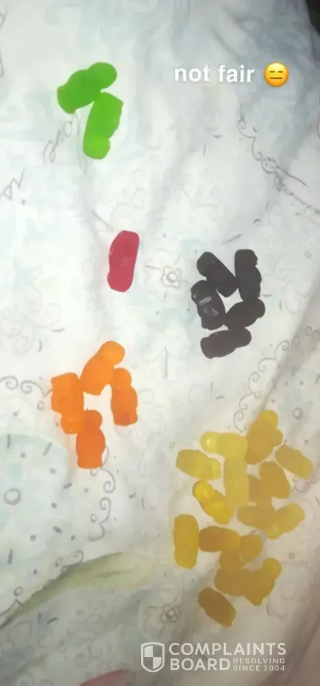 I bought a packet jelly babies and 80% of the packet was filled with yellow gums. This was a total waste as there was no variety. Please sort this out.