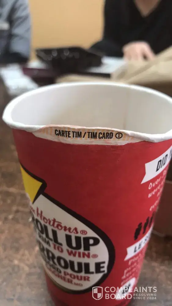 And decide to put my complaint online since I didn't hear back from tim horto store owner