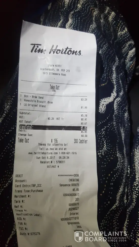 Timhortons location was: