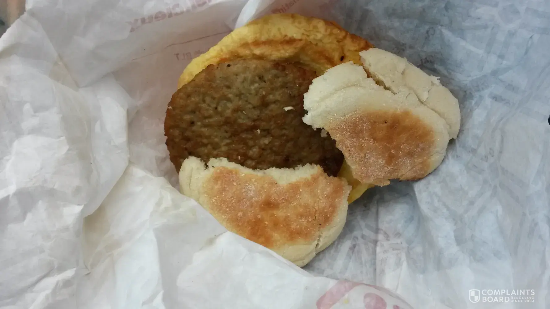 I ordered breakfast as I do any morning and I was so put off when I took my food out to eat it.I know speed in the drive through is a given but when it's not even toasted and looks like the pics I've sent I've been drinking tims since I was 11 years old.I've never had food that came out looking like someone ate it before me.I have tims ever morning before work and still do but this was just not right