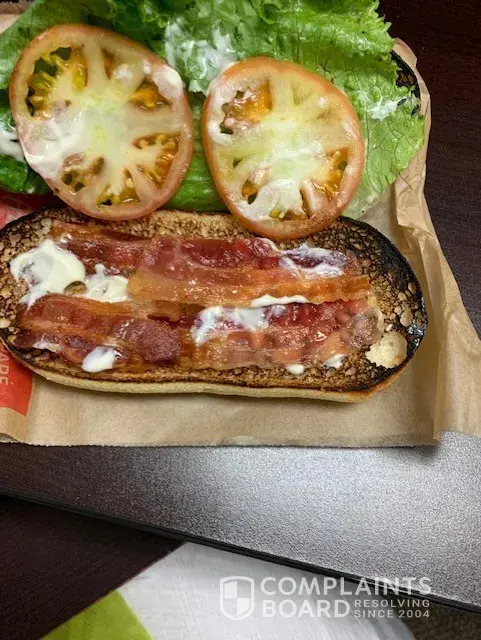 Thursday, September 8, 2022 at 2pm at the location at Dixie Rd north of Courtneypark, south of Derry Rd. I ordered a BLT with extra mayo. The bun came burned, barely any mayo, the tomatoes were very thin and green, and the lettuce was dirty. The lettuce looked like it was never washed! The bottom of the leaf was brown, and I could clearly see the dirt on the lettuce! This is the same location where on 2 different occasions, bought a Boston cream donut and there was no cream in them!