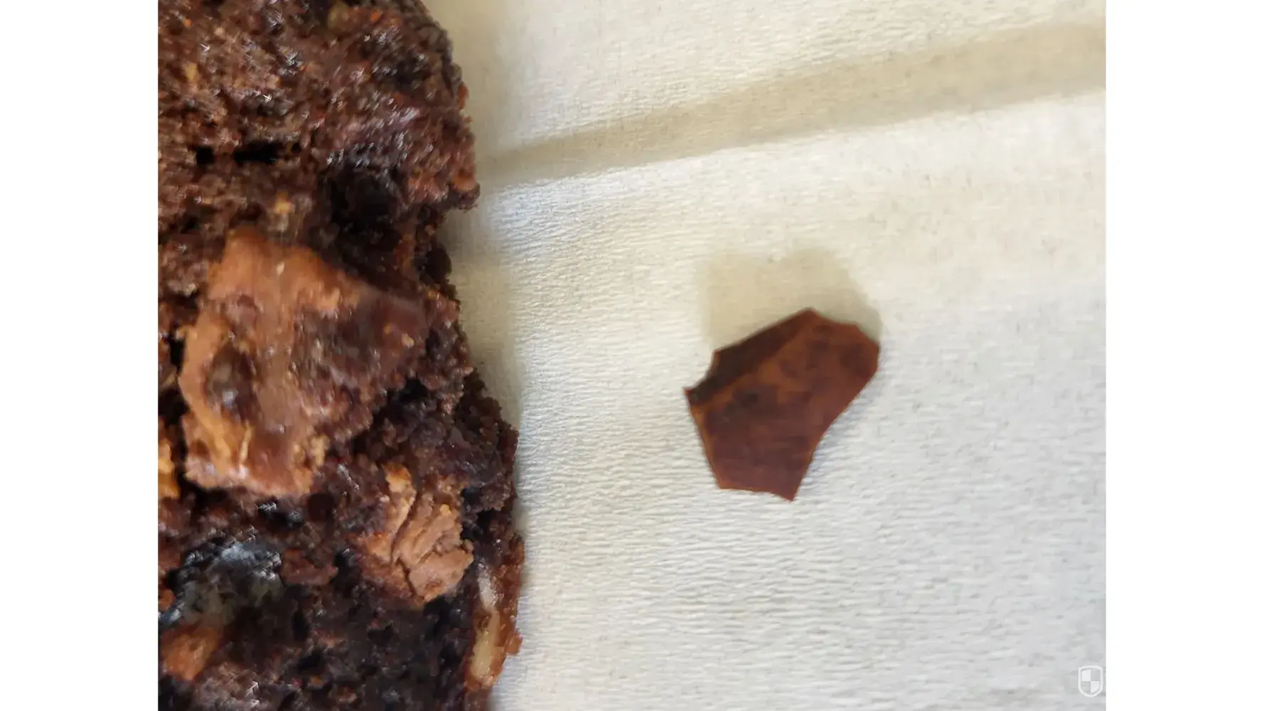 I spit out the hard item and realized it was a nut shell. I did not continue to eat the cookie because of the shell.