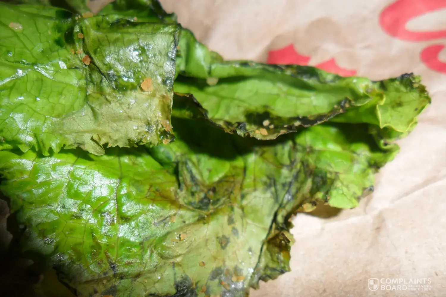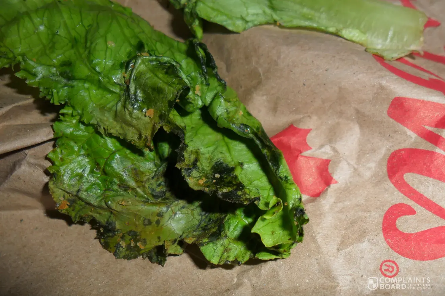 I visited Tim Horton's drive thru at 952 Fennell Avenue East, in Hamilton On, approximately 1:45 pm Saturday 21/06/26. I ordered two of the Crispy Chicken Craveable sandwiches, two donuts ( at least I tried to, but was told they had NO donuts), they only had two types of Timbits, so I asked for a pack of ten and a medium Ice Cap. When I got home I went to eat one sandwich and noticed the lettuce looked bad. Upon checking the second sandwich I noticed the same thing, see photo's. It does not speak well of a donut shop when halfway thru the day they have no donuts and a poor choice of Tim bits, not to mention bad produce. Not impressed at all. My e mail is linda.acct.[protected]@gmail.com