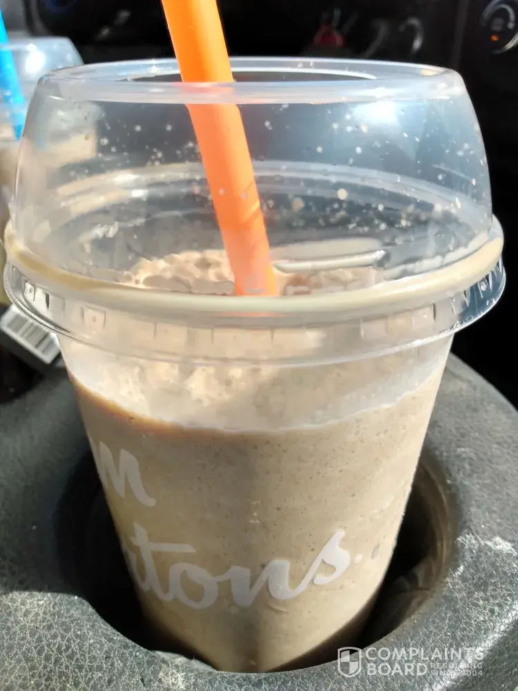 Purchased 2 large Ice Capps using a card. I couldn't believe what I was given and told the employee they were the smallest Ice Capps I've ever been handed, he didn't say a word. He should have been embarrassed to hand me those. I was in a hurry to get out of town for a 45 minute drive and had 48 minutes. Had i not paid first I would have left them there. I will never go back to that particular Tim Hortons again. I live 2 minutes away and wil go out of my way to go to a Tim Hortons in my town