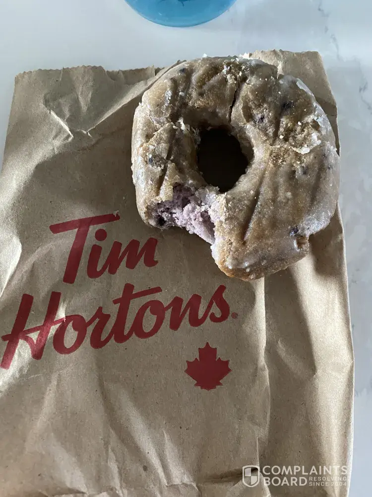 I purchased a steeped tea and two blueberry glazed donuts. One for myself and one for my friend. We drove home with our tea and donuts. Upon getting home I pulled one donut out of the bag and proceeded to eat it. Then I took second donut out to give to her and it looked like someone took a bite out of the donut. We were both in shock and disgust as I had...