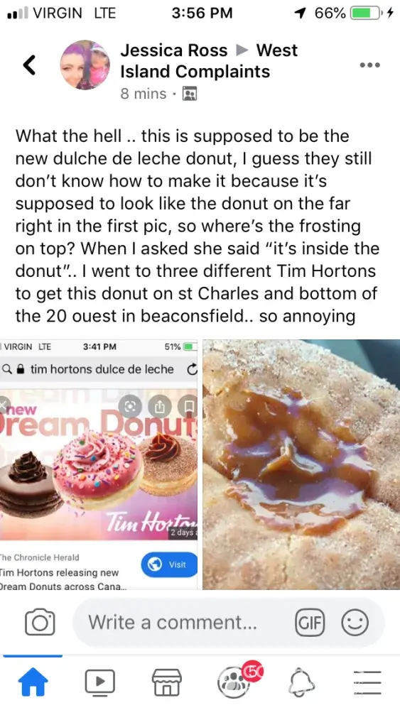 I got 2 of the new dream donuts. I have ordered them before, just the other day and this is the third tims I went to to get the donuts and when I stopped at 108 beauprarie drive in beaconsfield, both the donuts came without any frosting on top and only had crepe in the middle. It's as if you got a boston cream without any frosting on it. I asked about the...
