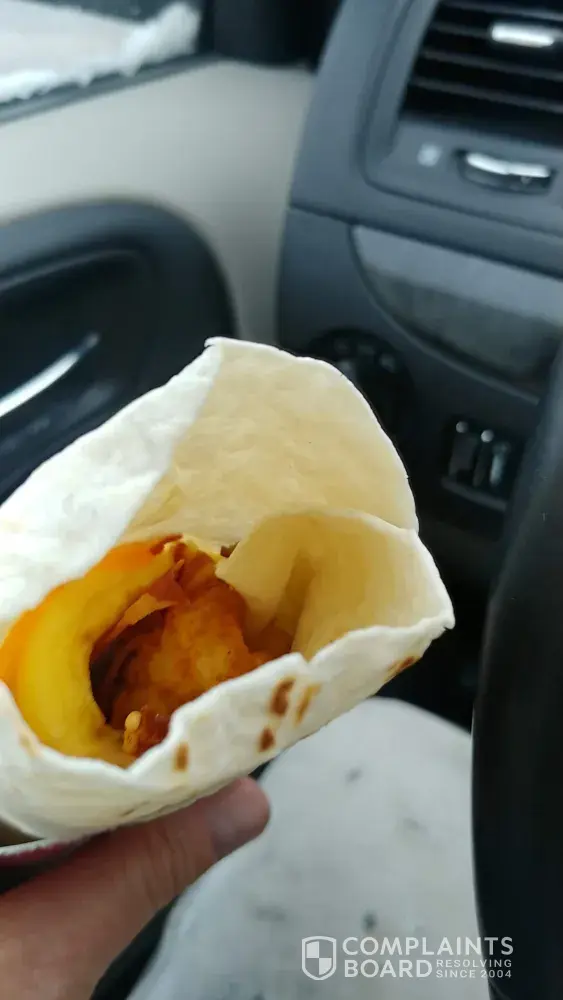How you served this. I can't even imagine! I'm discussed! The wrap is rubber! And to make it worse the top is black! The chicken at the top is hard as a rock and after the day I had I just wanted to enjoy my food! If this is not resolved I'll post a picture of this wrap and put it on social media this is not exepable ! Are you training your new workers? I'm actully discussed