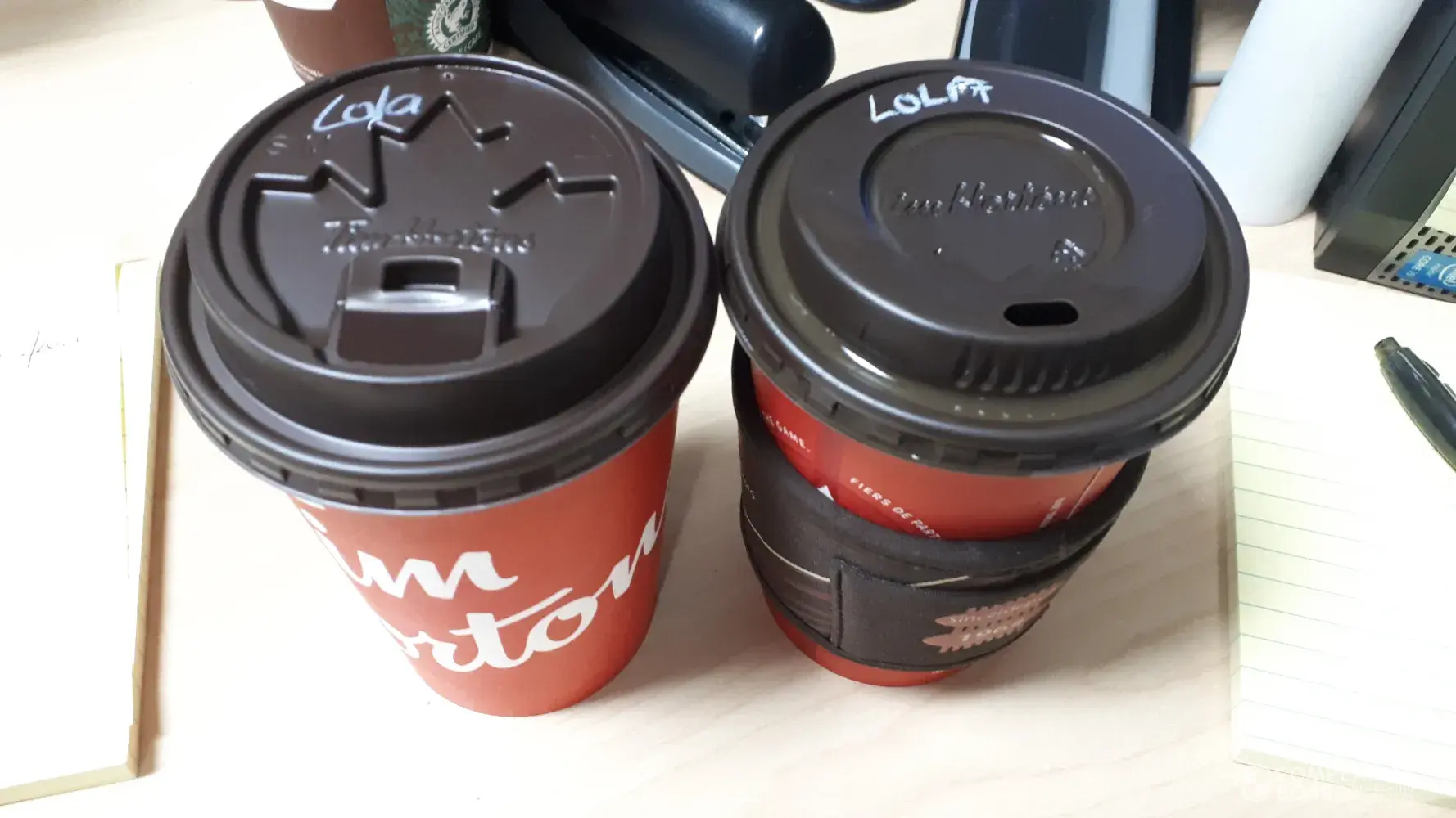 Up until a few weeks ago the lids were the standard lids (flat to the top), now they are more like a McDonalds lid. No consistency, sometimes I get a lid with just a hole in the top, sometimes it has the leaf imprint on the top where you have to fold the flap open. These lids are garbage. They leak, my coffee spills out. The rim is huge so when I drink it goes everywhere. I use to be able to bite my cup if I need a spare hand while opening a door or something, and I can't do that anymore. I also could stack 2 cups on top of each other if I need to as the lids were flat, good luck with that now. Heck, I have even dropped a Tims coffee with the old lid and it didn't pop off. Worst decision ever. Photo is 2 different lids in 2 days. I'm sick of leaking coffee down the front of me while in the car.
