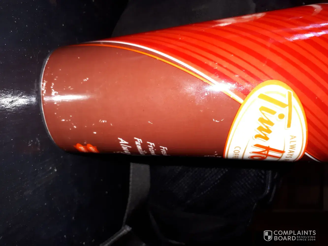 So I put the other 2 in the original boxes. And in the stash cupboard they went. Kids are older. Now so as i was cleaning, i pulled them out. I have been bouncing between the two for about month or less. I like my morning coffee.. I noticed a short while ago there was a funny taste near the end of my morning brew. So i just discarded it down the sink and washed my cup. A few weeks past I noticed a really gross nasty taste next near the end of my coffee. So again I discarded my coffee and put it in the sink to be washed. My mother has recently moved in with me and does the dishes occasionally. She told me something was wrong with my cup. So we inspected it. We noticed a break threw in the bottom inside. the old coffee and dishwater and ewwwwwws were being left in the inside of the cuo. Then as i DRANK my coffee and reached the bottom of the cup. This disgusting mix of Rot was meeting my fresh coffee. I wasn't feeling well and can not prove this was the only factor in my recent illness. But i believe it was. Asi felt better shortly after i stopped using my Tim Hortons cup. I now always second guess my coffee. And it is really hard to except any drink unless it is from a glass that i have inspected. I then felt it necessary to check out my second travel cup. Not only is the paint coming off the two. But It as well was coming apart on the inside. It had developed a hair line fracture like old porcelain would. I feel so silly, and not in a happy silly way. Having this new phobia is quiet embarrassing. I have the cups still . And i need to be herd. It has crossed my mind that mind that im not the only person who thought Tim Hortons was a reputable company with great products. And im not the only person to have purchased these travel cups as the lid is the best design i have seen and easy to clean and store. Im 39 and in alright health, less some bone issues. What if a 80 pound old lady drank this Rot that i had consumed? Or anyone with a low immunity. They would not have dealt with this situation in the manner. I'm taking it upon myself to make this complaint . With the exceptions there will finally be a recall on these cups. And maybe a little apology gift certificate would be appreciated. I don't enjoy take out any more. But i like the k cups. I will send pictures of the cups. And the smell of the rotten one is undescribable.